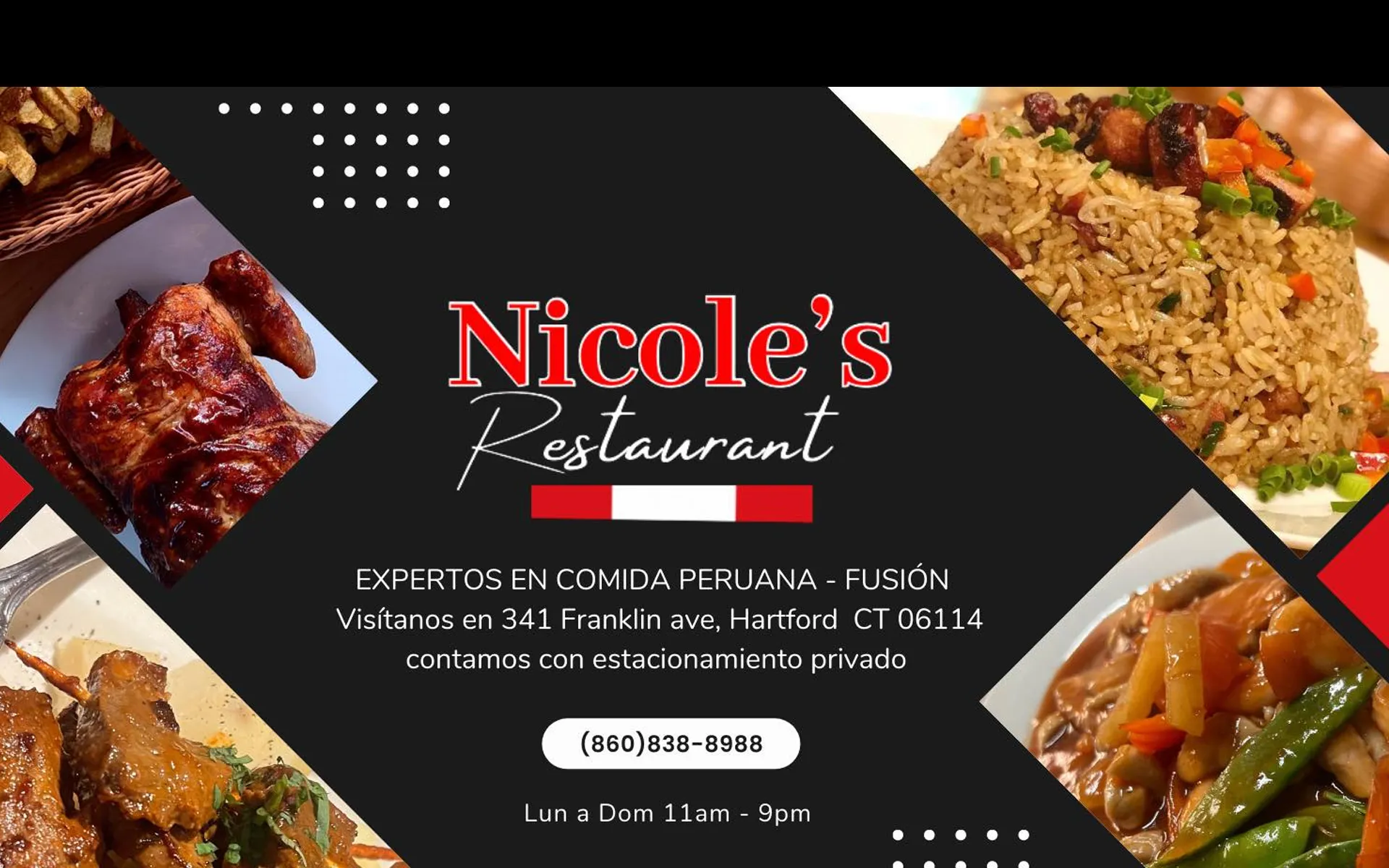 Nicole’s Restaurant Hartford -341 Franklin Ave, Hartford, CT 06114 - Get Direction View photos Wishlist Information ReviewsOur tradition makes us different pioneers of Chifa food in Hartford CT Peruvian fusion food Show more Show lessHow to get to Nicole’s RestaurantAddress341 Franklin Ave, Hartford, CT 06114 Get DirectionFollow Us Be the first to review “Nicole’s Restaurant” Cancel reply Food Quality Location Service Price Save my name, email, and website in this browser for the next time I comment. Facebook Pinterest Similar Listing Chifa (Peruvian-Chinese Cuisine) Toby’s 2 – Winsted127 Main St Winsted, CT 06098 Now: Open Seafood & Ceviche El Palacio de los Mariscos99 Mill St, Greenwich, CT 06830 Now: Open Pollerías (Peruvian Chicken) Chubby Llama201 Central Avenue, Norwich, CT Now: Open Traditional Peruvian Cuisine Chifrijos Restaurant311 Main St, Ansonia, CT 06401 Now: Open