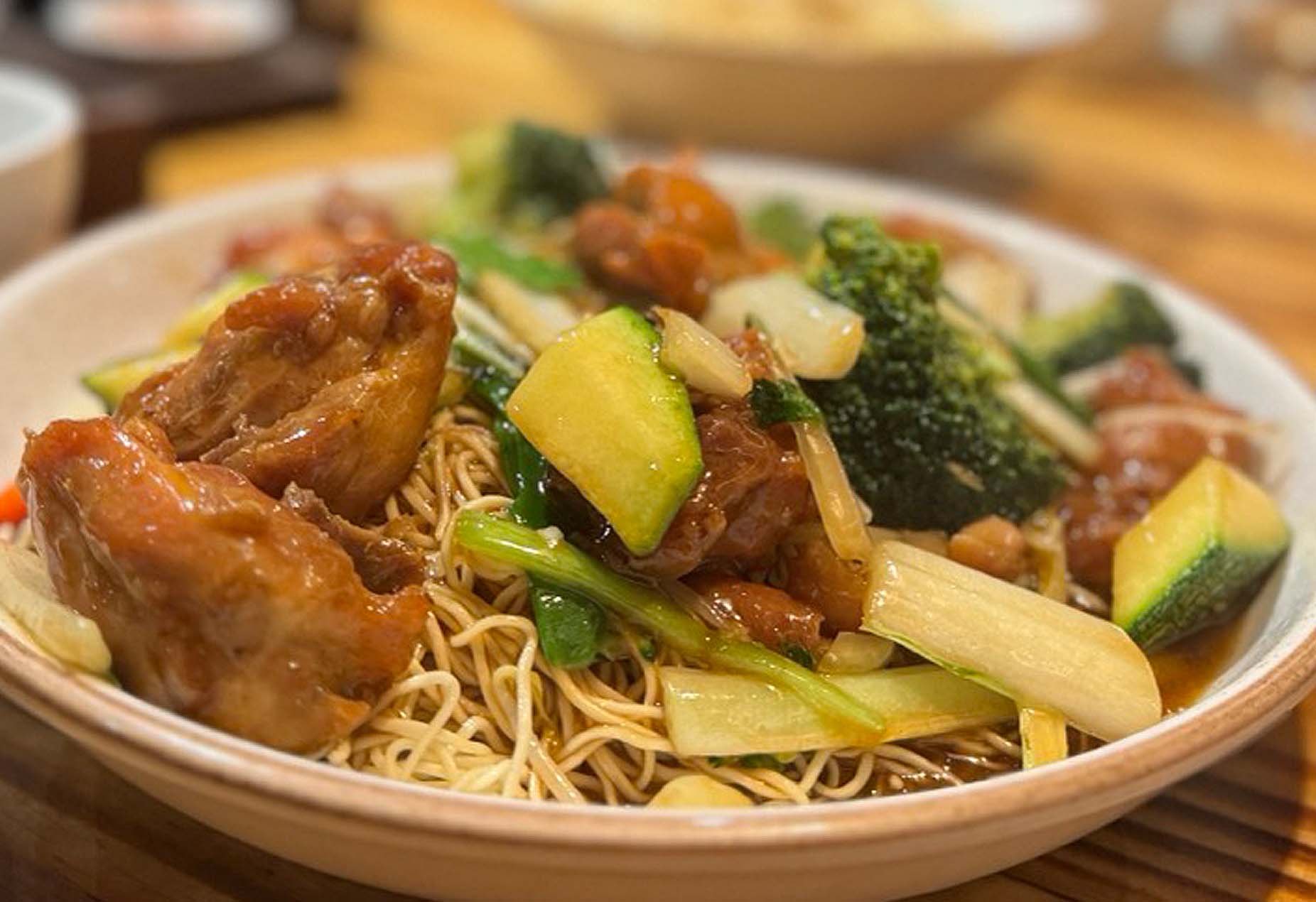 El Tallarín Saltado de Pollo es uno de los platos más representativos de la cocina chifa peruana. Combina pollo jugoso, fideos salteados a fuego alto, sillao y verduras crujientes que aportan textura y sabor. Su aroma ahumado, típico del wok, lo convierte en un plato reconfortante y lleno de carácter. Es la perfecta fusión entre tradición china y sazón peruana.